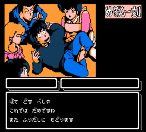 レトロゲームにおける評価基準のひとつである“何をしていいか分からない度”では、「ながいたびがはじまる」とだけ言われて、そのほかいっさい教えてくれない『元祖西遊記スーパーモンキー大冒険』(1986年・バップ)がダントツ高いことで有名ですが、めぞん一刻の場合は、真ん中かやや上あたりの“分からない度”でしょう。